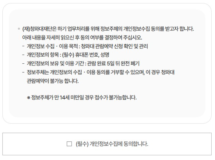 👉 www.opencheongwadae.kr - 회원가입 or 비회원 예약 선택
